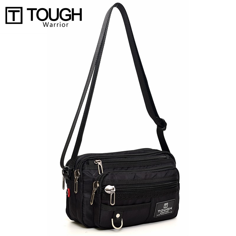 tough日系复古纯黑男士斜跨工装包潮牌单肩包户外多口袋尼龙布包热门设计联盟服务商